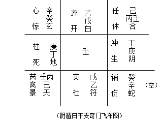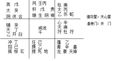3、确定值使门,即将旬首宫中之门为值使之门,再将值使之门加临在日支宫中;
