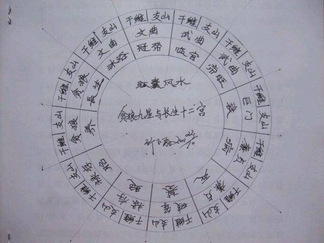 又如:乾宫来龙(乾山或甲山),即在乾卦的本宫上起伏位,乾兑互翻,兑为贪狼一数,震为巨门二数,坤为禄存三数……这样即可知道九星分布在哪些卦位。