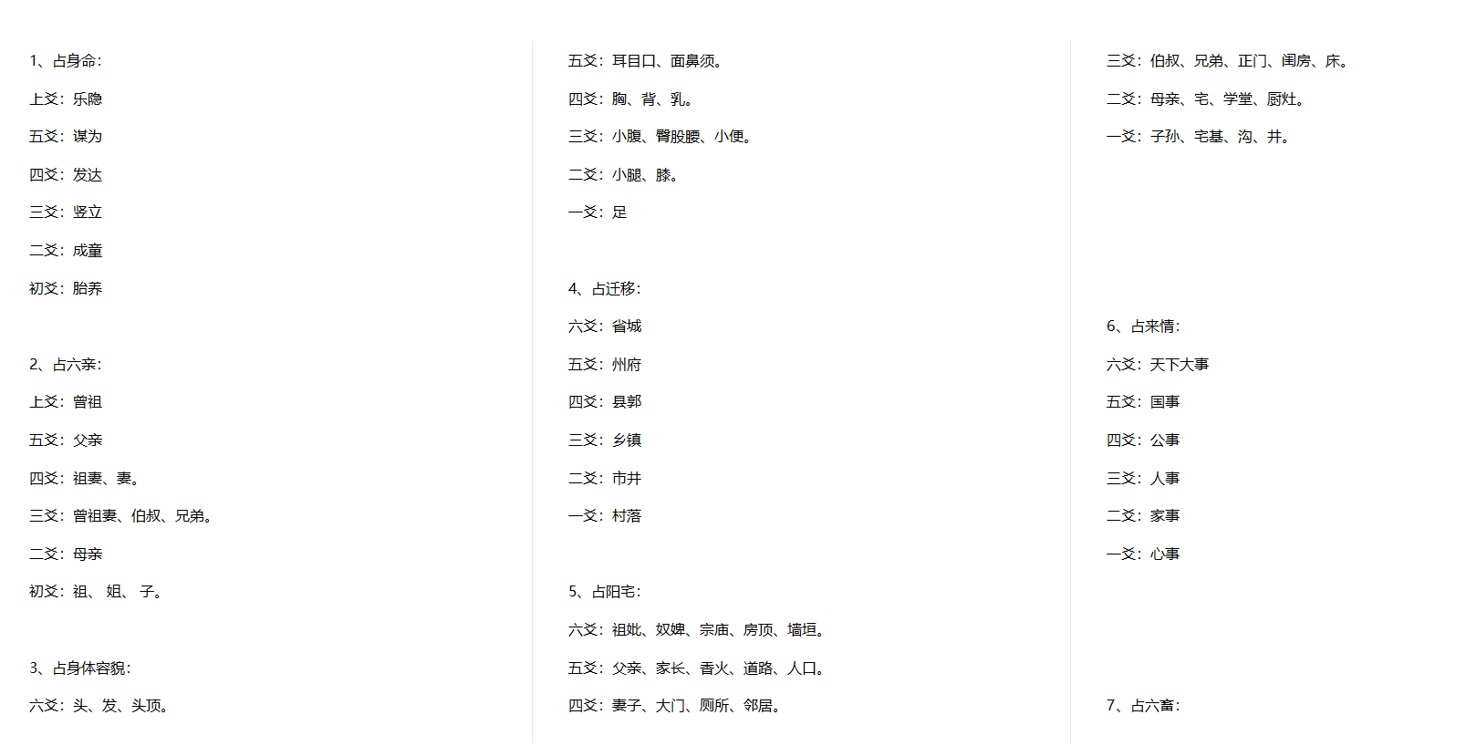 7、占六畜:
