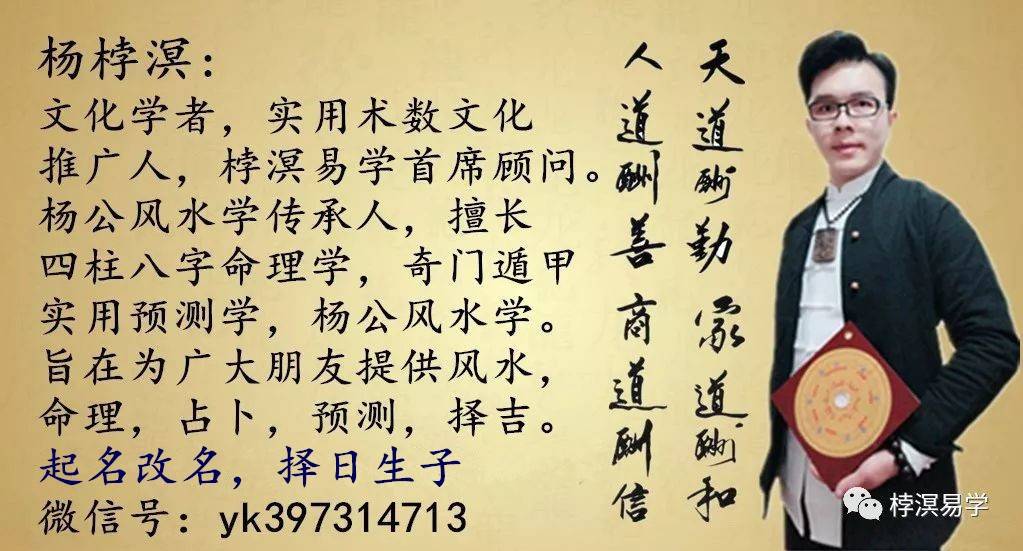 桲溟易学首席顾问,杨公风水传承人,文化学者,实用数术文化推广人!擅长四柱八字命理学,奇门遁甲。六爻占卜,杨公风水学。